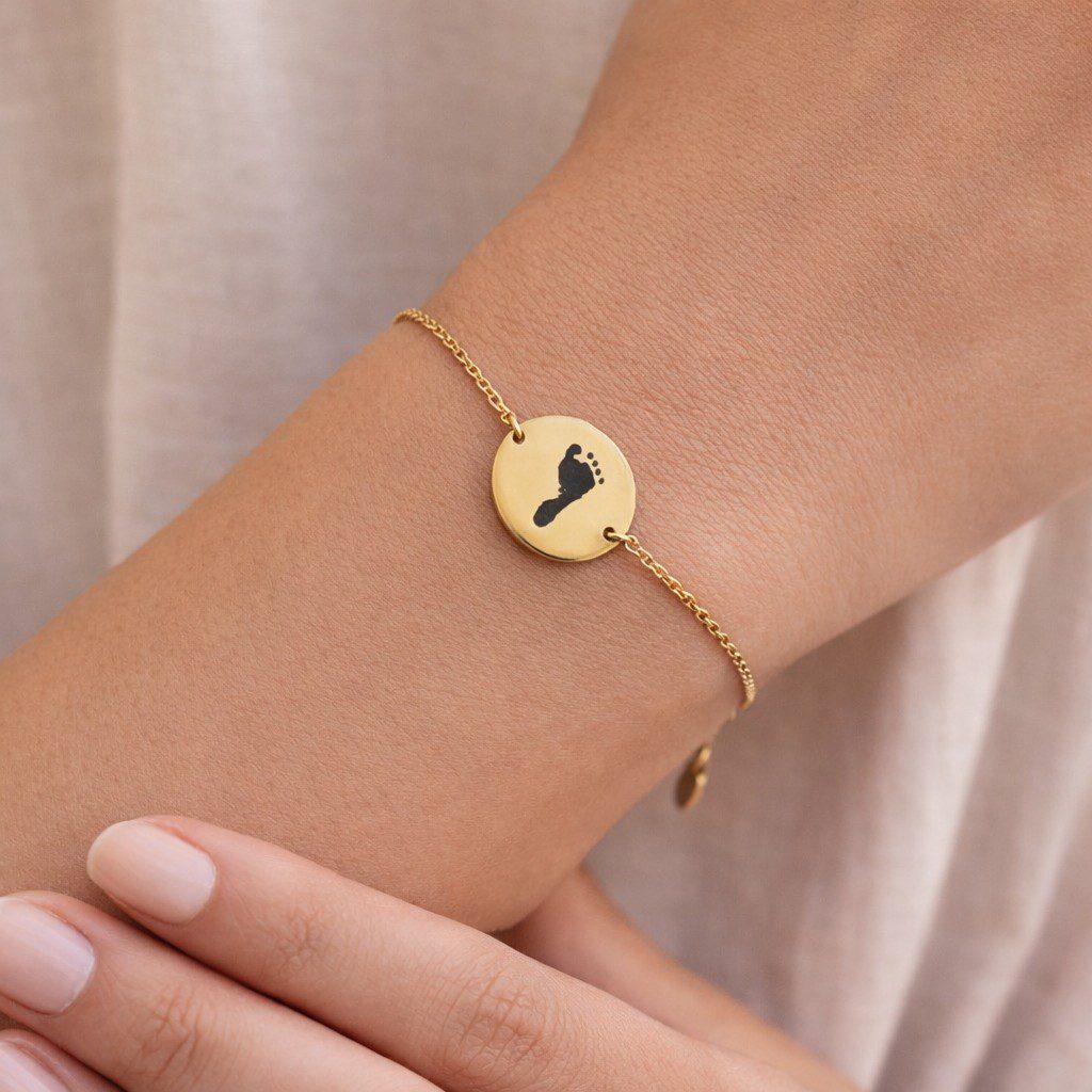 Draag je kleintje voor altijd dichtbij je met deze armband met voetafdruk! Een uniek en persoonlijk sieraad. Maak de armband nog persoonlijker door de naam of geboortedatum van je kleintje aan de achterkant te graveren. Maak de voetafdruk gemakkelijk met ons stempelkussen.