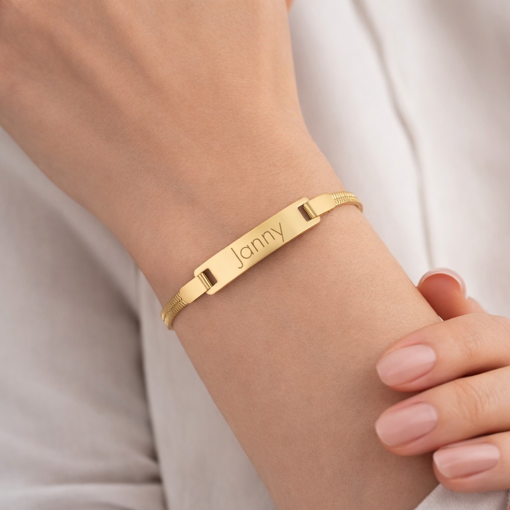 Personaliseer deze Gladde Armband met Naam helemaal naar eigen wens! Deze prachtige armband is voorzien van een graveerbare bar waarop wij gratis iets voor jou graveren. Ga jij voor de naam van je geliefde of jezelf, of juist voor de initialen van je ouders of kinderen? Maak je sieraad nog persoonlijker door de achterkant te laten graveren met een tweede naam of bijvoorbeeld een plaats, tekst of datum.