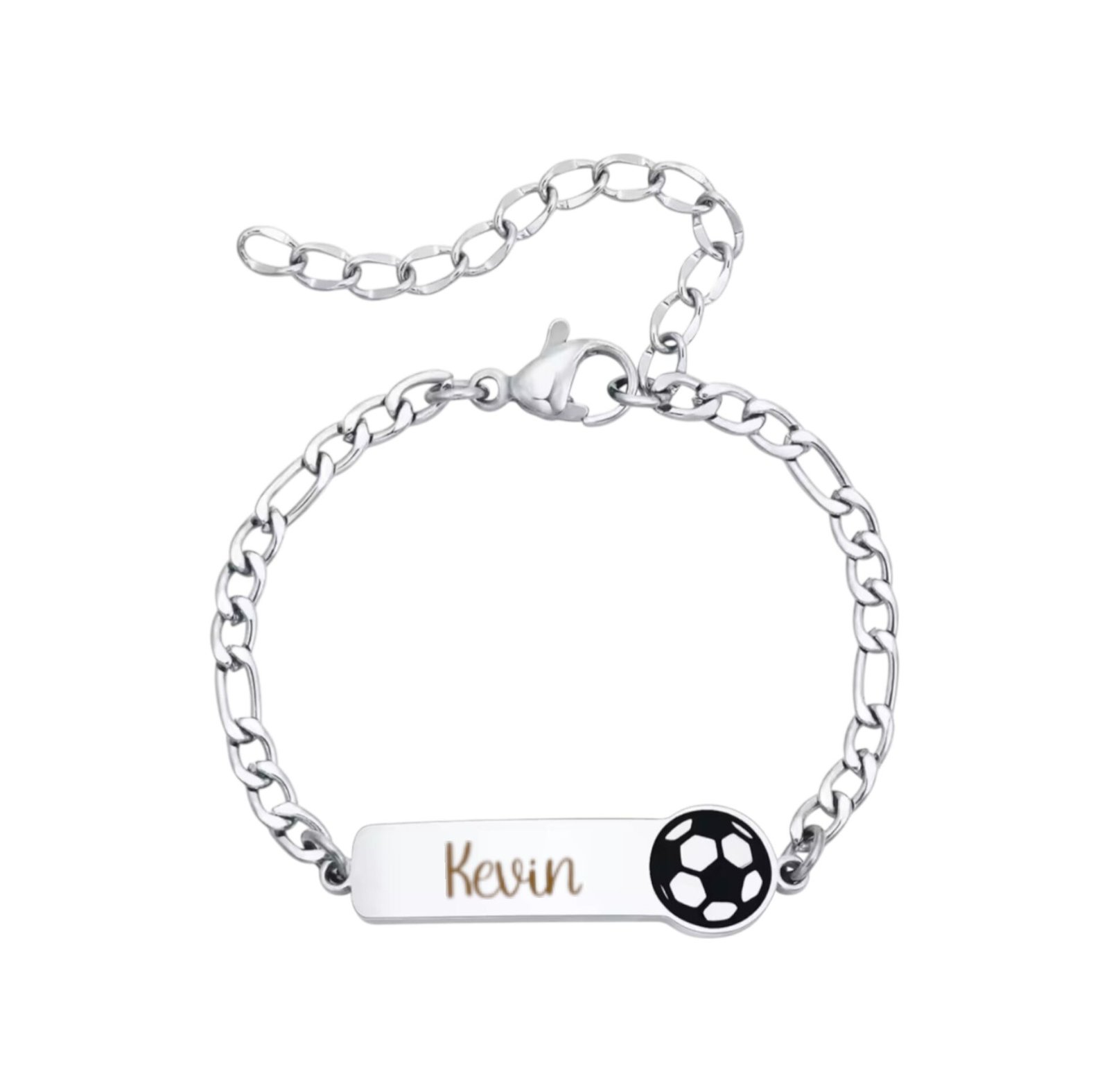 En het leuke is, wij graveren de voorkant van de jongens naam armband met voetbal gratis! Voer zijn naam in en kies het gewenste lettertype. Tegen een kleine meerprijs graveren wij ook de achterkant, handig om bijvoorbeeld je eigen telefoonnummer op te zetten.