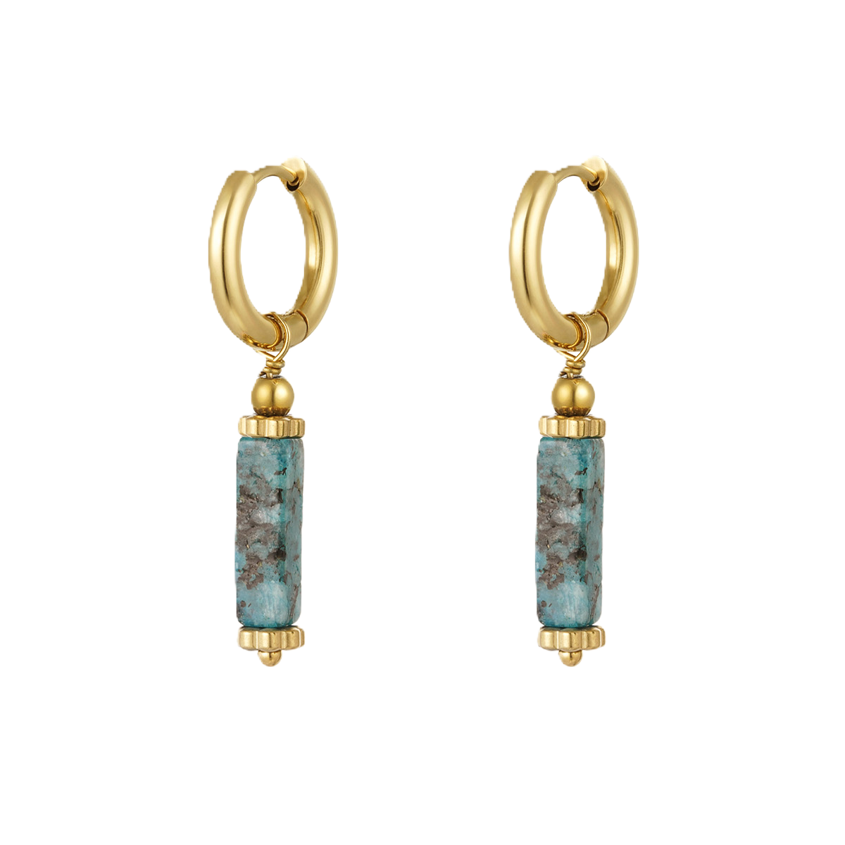 De Oorbellen Hayley zijn voorzien van een hanger van blauw natuursteen. Verkrijgbaar in de kleuren zwart, blauw en bruin, zodat je altijd een paar vindt dat perfect bij jouw stijl past.