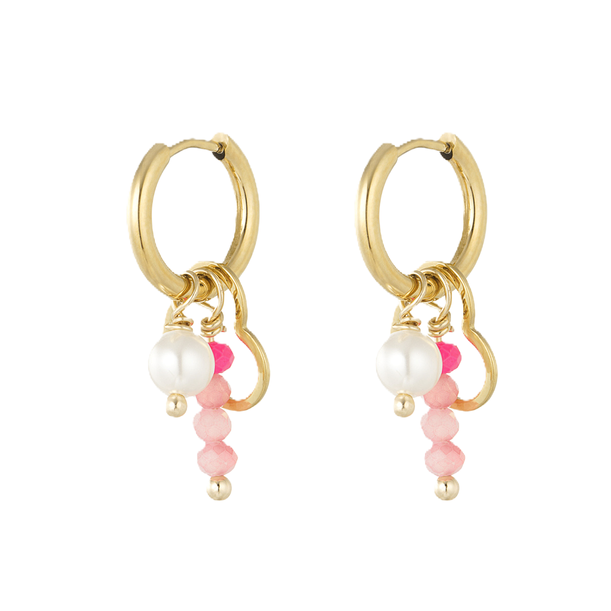 De oorbellen Love on Top hebben een charmante hart bedel, een roze kralen hanger en een kleine parel, wat zorgt voor een romantische uitstraling. De Oorbellen zijn de ideale keuze voor elke gelegenheid, of je nu een casual dag hebt of een speciale avond uit plant. Voeg een vleugje romantiek toe aan je sieradencollectie en straal met Charlery.