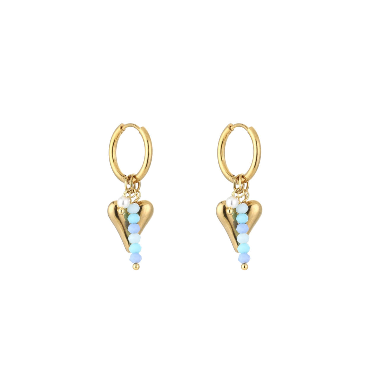 Deze oorbellen met hartje en kralen blauw zijn toch super cute?! De gouden hoops zijn voorzien van kleine blauwe kralen en een hartje.